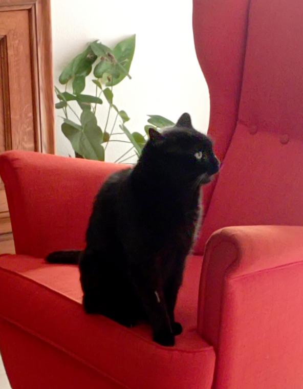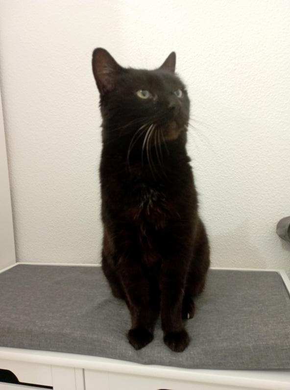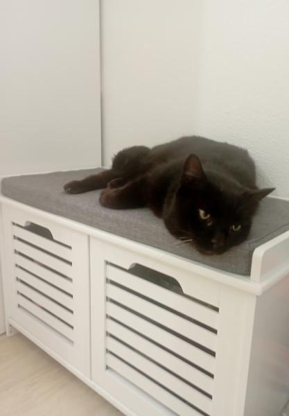 Bien que resté dehors jusqu’à sa prise en charge, Kookie s’est très bien adapté à la vie en intérieur même s’il regarde souvent par la fenêtre ce qui se passe dehors.