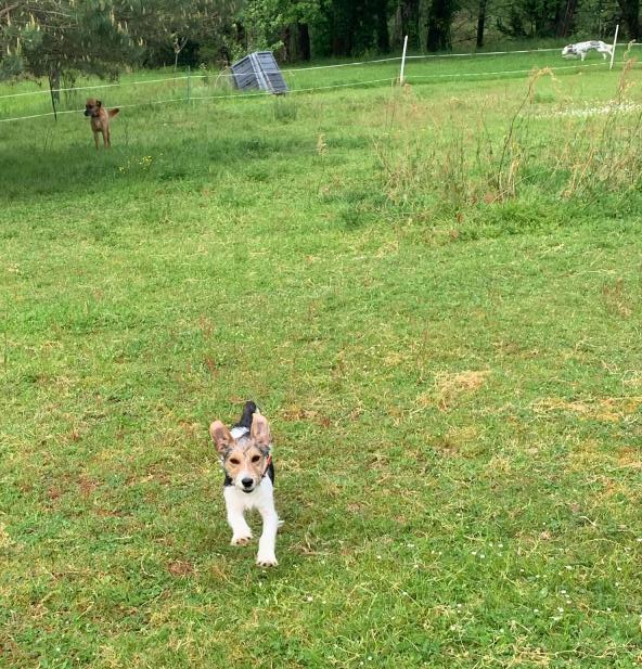U’Joy est une petit chienne dynamique, joueuse et câline. Elle adore être en extérieur avec ses copains chiens mais quand l’heure de la sieste arrive, elle aime venir sur les genoux de son humain.