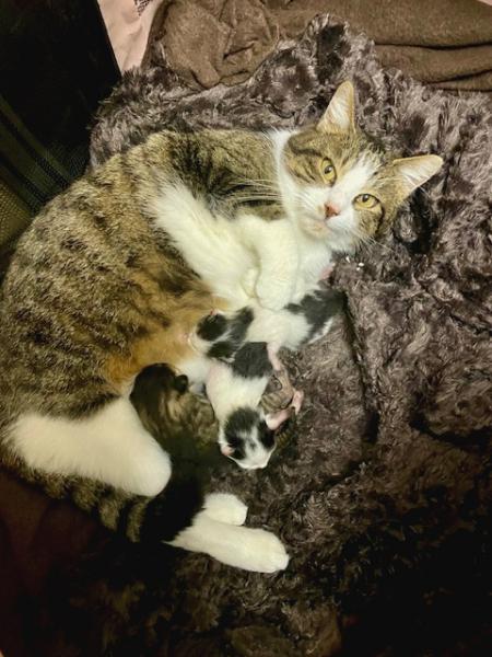 – Couleur : tigrée et blanche