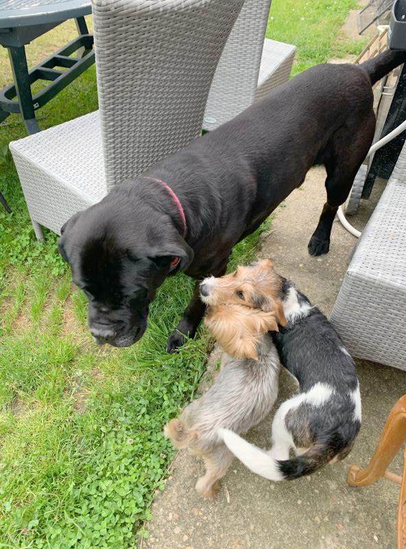Il s’entend très bien avec ses congénères petits ou grands. Il est également ok chats, volaille et chevaux.
