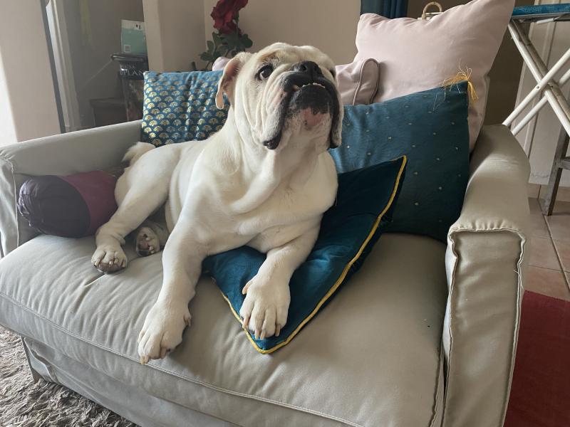 Mao est un amour de chien débonnaire, toujours de bonne humeur. Plutôt team canapé que team sport, il aime son confort et préfère de loin le fauteuil aux balades. Dans sa famille d’accueil, il se contente de sortir dans le jardin et ne veut pas aller se promener au delà.