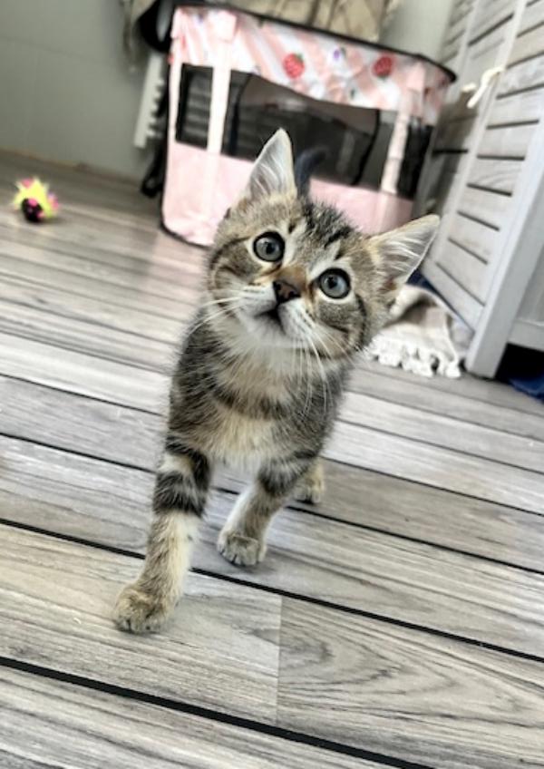 Son histoire: Véra, son frère et sa sœur ont été trouvés dans la rue à peine âgés de quelques jours. Ils nous ont été confiés par une personne qui s’est souciée de leur avenir et ont été biberonnés par une famille d’accueil, ce qui en fait des chatons proches de l’humain.