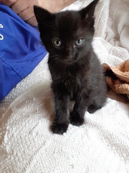 Son histoire: V’Kiss et sa fratrie sont nés d’une maman sauvage dans le jardin de leur famille d’accueil qui a rapidement mis à l’abri la petite tribu dans sa véranda. La maman a depuis été stérilisée et laissée aux bons soins de ses bienfaiteurs.