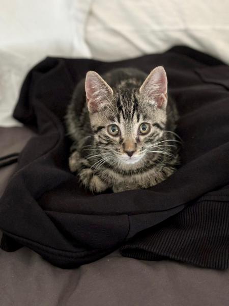Son histoire: Vendredi a été trouvé un vendredi, seul et apeuré dans la rue, à peine âgé de deux mois par l’une de nos familles d’accueil.