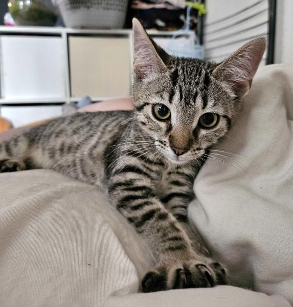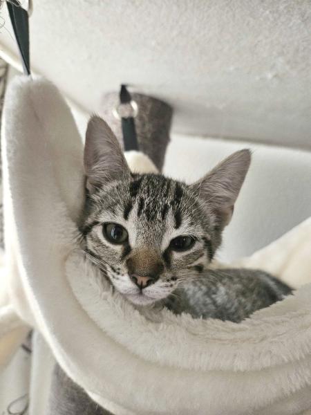 Son histoire: Vidia et ses frère et soeurs (Vox, Venti, Valtor) sont nés d’une portée indésirable. Une fois les chatons sevrés, leur maman a été stérilisée par ses propriétaires.