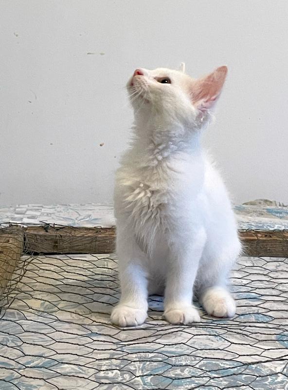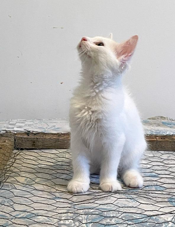 Elle est issue d’une portée de sept chatons, aux pelages et caractères différents. Arrivée en famille d’accueil avec sa maman et sa fratrie, elle était la plus chétive de la portée. De ce fait, elle a bénéficié de soins et d’attentions particuliers de sa nounou d’accueil, ce qui l’a rendue proche de l’humain.