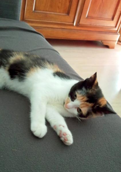 Pleine de pep’s, elle aime jouer, surtout avec sa souris et sa canne à pêche. Elle met encore un peu les griffes quand elle joue et a tendance à mordiller les doigts.