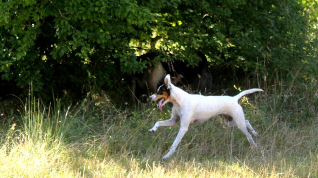 Elle a un bon rappel mais peut partir sur une piste si elle renifle un lapin ou autre… elle finit toujours pas revenir. Elle est plutôt sage et obéissante. La marche en laisse est acquise.