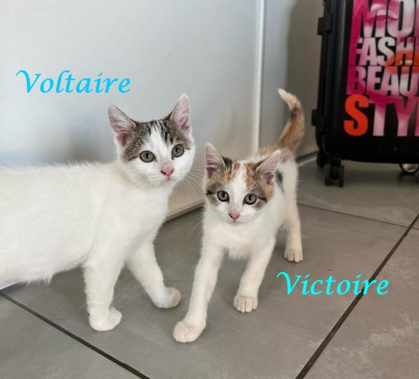 Son histoire: Voltaire et ses soeurs ont été sauvés par une personne qui les a sortis de maltraitance alors qu’ils étaient sans leur maman, mal nourris, bourrés de puces et de vers.