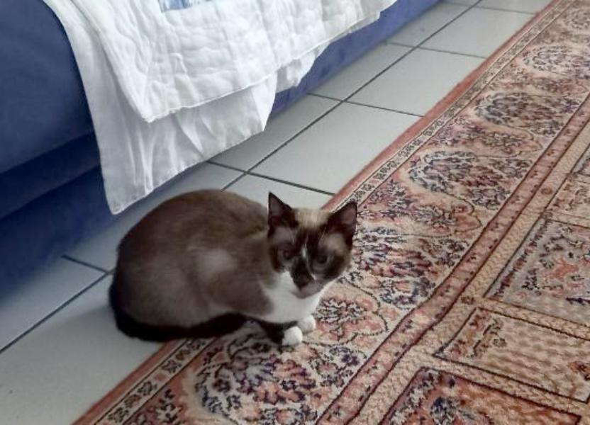 Son histoire: Yuna est arrivée une beau jour dans le jardin de sa famille d’accueil avec son chaton.