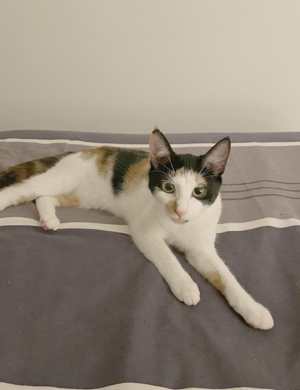 Vahity est une chatonne joueuse et très curieuse qui adore regarder la télé. Elle aime observer ce qui se passe dehors perchée sur son arbre à chat.