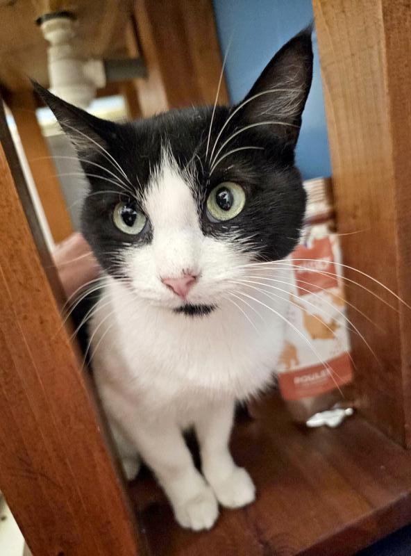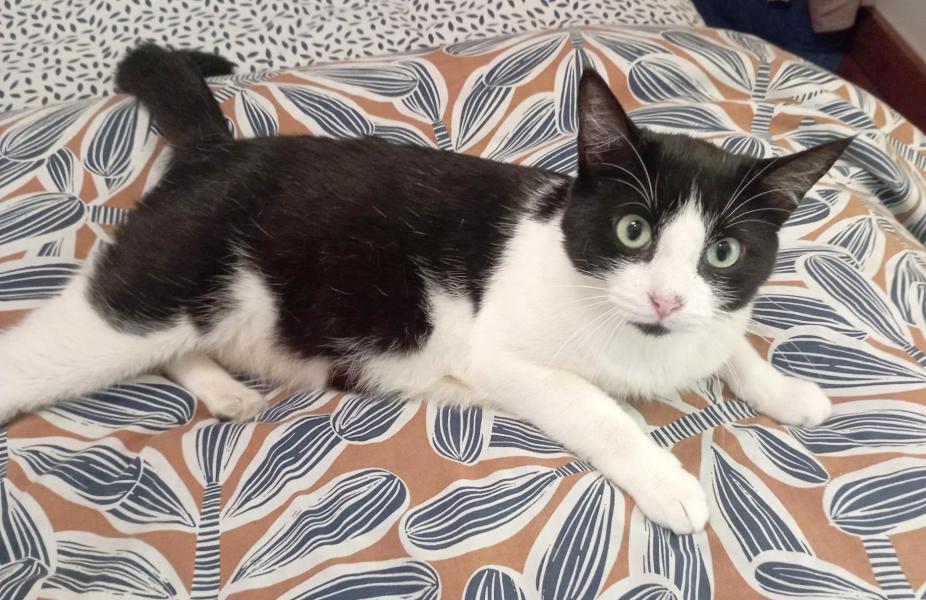 Zine est une toute jeune chatte très douce et très câline qui ne sort jamais les griffes. Discrète, elle ne miaule jamais.
