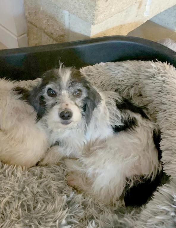 Bertine est une petite chienne gourmande qui adore le canapé . Elle est très câline, ok congénères et ok chats. Elle pèse 7 kilos.