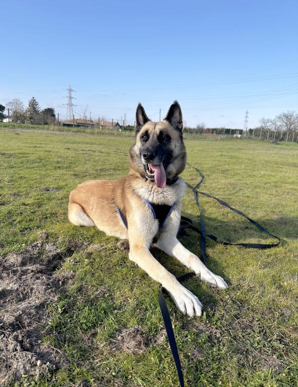 Issu d’un croisement malinois/husky, Marcus apprend très vite et est très intelligent. Il a besoin d’être stimulé tant physiquement qu’intellectuellement pour s’épanouir.