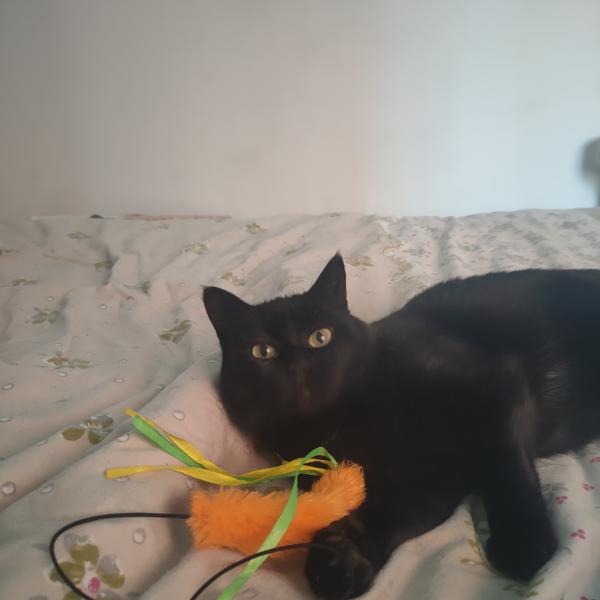 « Kotka est une jeune chatte très timide, un brin gourmande et assez joueuse. D’un naturel très calme et posé, elle adore faire des siestes sur sa chaise préférée ou dormir sur le lit. Elle a ses moments de jeux qui sont de plus en plus nombreux avec le temps. Elle sait jouer seule et quand c’est avec avec sa nounou, c’est toujours une fois posée dans un endroit confortable. Maintenant elle ronronne dès que sa nounou la caresse. Pour le moment, elle ne se laisse caresser qu’une fois allongée ou assise, sinon elle refuse. Il faut aller vers elle, ce n’est pas elle qui vient chercher un câlin. On lit la douceur dans son regard. Elle dort toutes les nuits aux pieds de sa famille d’accueil. Discrète, Kotka ne miaule pas.