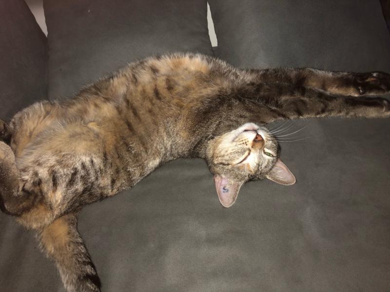 Bulma est identifiée, stérilisée, testée fiv/felv négatif, vaccinée typhus/coryza et déparasitée.