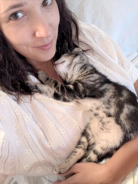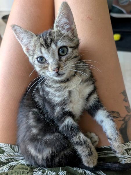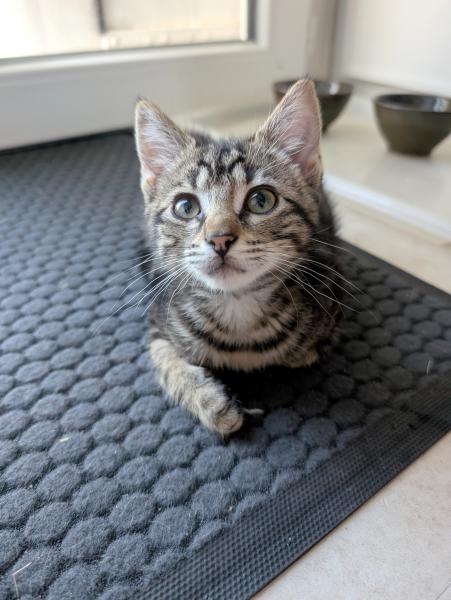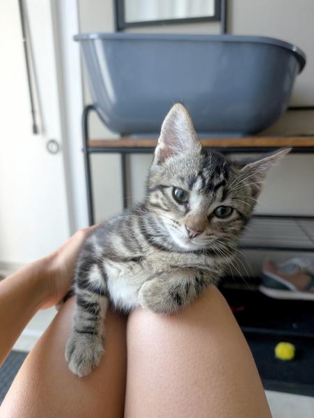 Son histoire : Apostrophe a été récupéré dans un carton dans la forêt avec ses 3 frères et sœur. Ils ont été recueillis en famille d’accueil à l’âge de 2 semaines, ce sont des chatons en bonne santé et bien dans leur tête malgré l’absence de leur maman.