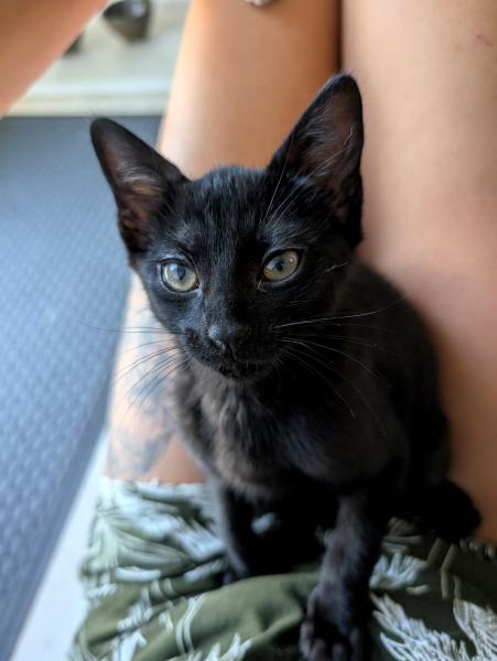 Son histoire : Ariette a été récupérée dans un carton dans la forêt avec ses 3 frères et sœur début Mai. Ils ont été recueillis en famille d’accueil à l’âge de 2 semaines, ce sont des chatons en bonne santé et bien dans leur tête malgré l’absence de leur maman.
