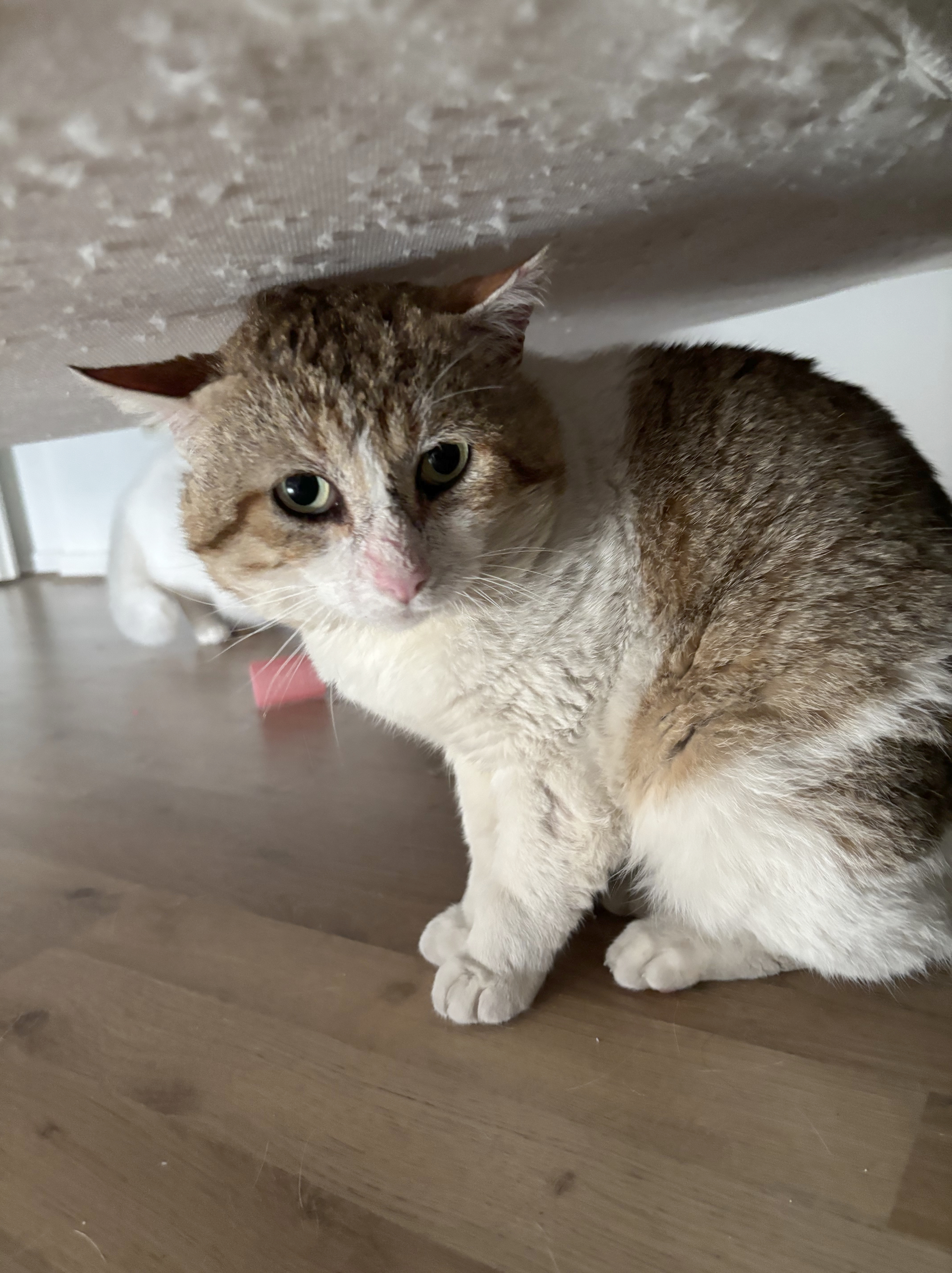 Il y a un mot magique qui me fait sortir de ma cachette à tous les coups : « pâté ». Et oui, je suis un petit gourmand. Si tu le dis, j’arrive en miaulant, tout content, prêt à discuter.