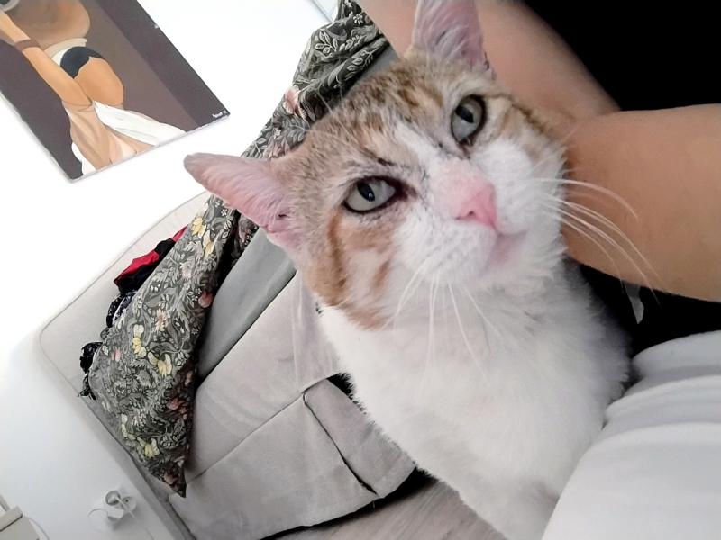 « Je suis un chat un peu timide au début. Les premiers jours, j’aime rester dans un coin tranquille et observer ce qui se passe autour de moi. Je ne me jette pas tout de suite dans les bras. J’ai besoin de temps pour me sentir en sécurité. Mais si l’on m’apprivoise avec douceur patience et friandise, je deviens un vrai pot de colle plein d’amour. Je suis très câlin.