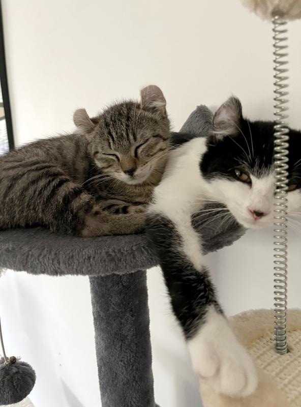 Son histoire: Alistair et ses frère et soeurs sont nés d’une maman errante recueillie par un monsieur au grand coeur. Il a pris soins de toute la famille jusqu’à ce que les petits soient sevrés. Ils nous les a ensuite confiés et a adopté la maman qui a depuis été stérilisée.