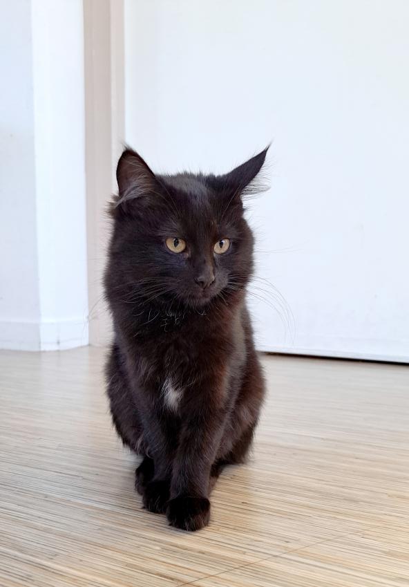 Arthurette est une chatonne gentille et câline. Gourmande, elle est toujours la première pour la pâtée et n’hésite pas à piocher dans les gamelles de ses petits camarades.