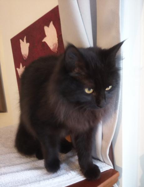 Elle est très joueuse et adore tout particulièrement le laser ou les balles. Cette petite gourmande accourt dès qu’on l’appelle pour manger et n’hésite pas à réclamer si ça n’arrive pas assez vite.