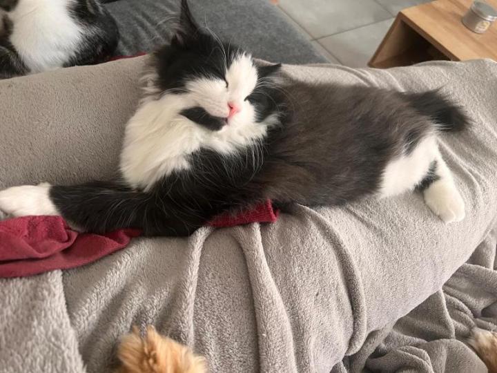 De son début de vie compliqué, il garde une sensibilité intestinale qui nécessite une alimentation avec des croquettes spécifiques pour son bien être.