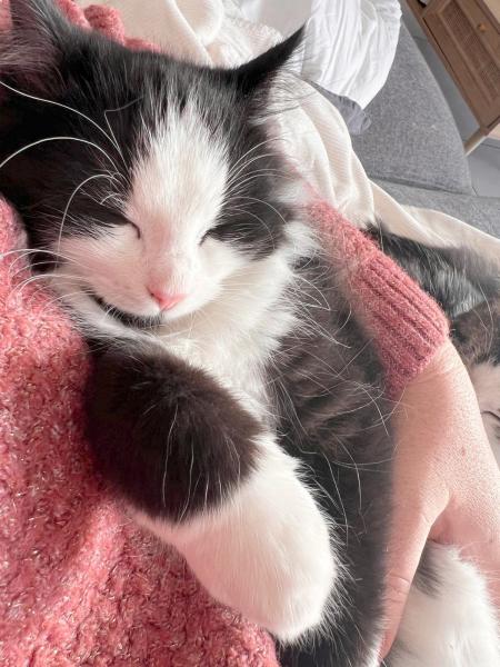 Achille ou Ash de son petit nom est un petit chat de cinq mois timide de prime abord qui a besoin d’une famille patiente. Une fois en confiance, vous découvrirez un chaton très joueur, avec une passion pour les jouets à grelots et qui adore interagir avec ses humains. Une fois rassuré, Ash devient une vraie crême.