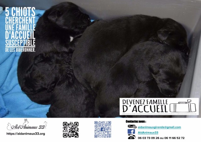 On cherche une Famille d’Accueil susceptible de biberonner ces 5 chiots dans maximum 15 jours et qui pourrait prendre les 5. Merci pour votre aide et … Continuer de lire Urgent : Recherchons une famille d’accueil pour 5 très jeunes chiots
